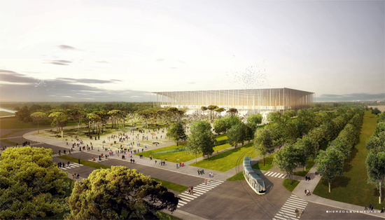 Ce stade a été réalisé par un duo d’architectes suisses, Herzog & De Meuron, qui ont remporté l’appel d’offres avec Vinci. Le projet a été financé par plusieurs entités : le club des Girondins de Bordeaux a versé 20 millions d’euros puis a aligné ensuite 4 millions d’euros par ans pendant 30 ans, l’Etat a pour l’heure dépensé 28 millions dans le projet, la ville de Bordeaux à hauteur de 17 millions d’euros, la communauté urbaine de Bordeaux avec 15 millions, tout comme la région Aquitaine. En tout, la construction de ce nouveau stade pèse près de 180 millions d’euros.